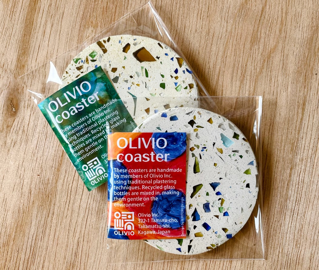 オリビオコースターは、左官の技術を駆使し、オリビオのメンバーが心を込めて手作りした特別なコースターです。廃品のガラス瓶を活用したこのコースターは、見た目の美しさだけでなく、地球環境への配慮も兼ね備えています。各コースターはそれぞれ異なる個性を持ち、自宅のインテリアに温かみを加えてくれます。どんなシーンにもマッチするシンプルでスタイリッシュなデザインは、日常使いはもちろん、ギフトとしても喜ばれる一品です。オリビオコースターを使うことで、エコでセンスのあるライフスタイルを楽しんでいただけます。